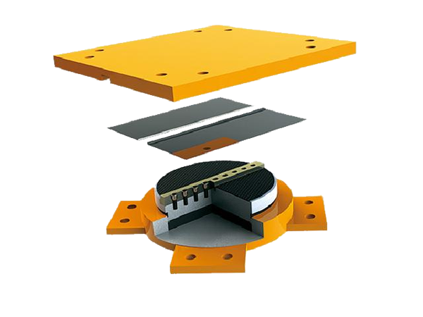 抗震盆式橡膠支座是在常規(guī)盆式橡膠支座基礎(chǔ)上增加了耗能滑板和阻尼圈。地震時(shí)上支座板和耗能滑板滑動(dòng)摩擦吸收能量,同時(shí)阻尼圈可緩解地震作業(yè)對(duì)底盆的水平?jīng)_擊,有效的保護(hù)橋梁建筑上下部結(jié)構(gòu)。平常通過(guò)中間鋼板和耗能滑板之間的靜摩擦力控制上部結(jié)構(gòu)變位??拐鹋枋较鹉z支座承…