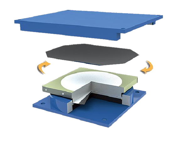 由上支座板、球冠球冠襯板、球面四氟滑板、下支座板組成。通過(guò)球冠襯板和球面四氟滑板以及球冠襯板和上支座板的相對(duì)滑動(dòng),共同實(shí)現(xiàn)上部結(jié)構(gòu)的萬(wàn)向轉(zhuǎn)動(dòng)。特適用于大噸位、大轉(zhuǎn)動(dòng)、大跨度的建筑結(jié)構(gòu)。