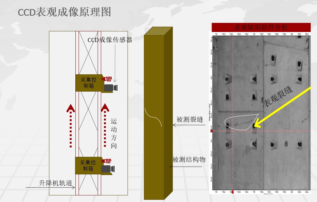 塔內升降機可選配智能化檢測裝置,實現遠程操作對主塔內砼結構、錨索區(qū)等位置進行全自動掃描檢測,自動分析病害位置,大大降低了人工勞動強度,減少了人為因素檢測不到位或不實的情況,實現橋塔后期智能化檢測養(yǎng)護作業(yè)。