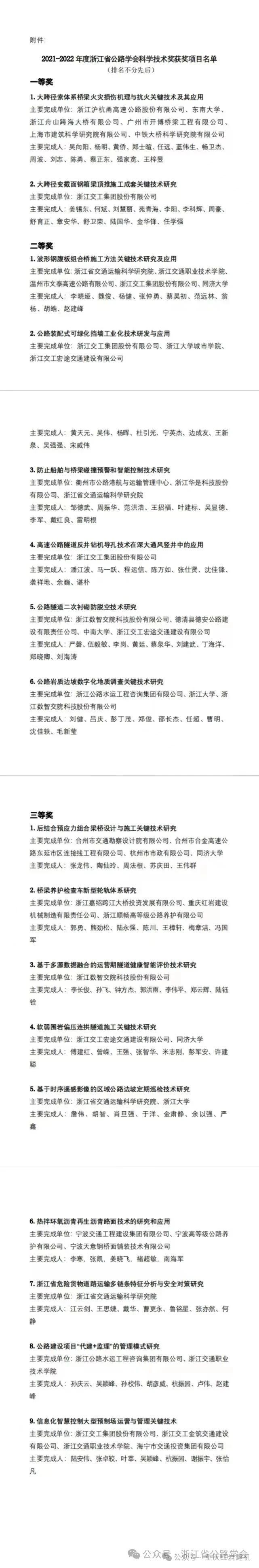 1月15日浙江省公路學(xué)會(huì)發(fā)布2021-2022年度浙江省公路學(xué)會(huì)科學(xué)技術(shù)獎(jiǎng)評(píng)審結(jié)果,重慶紅巖建設(shè)機(jī)械制造有限責(zé)任公司與浙江嘉紹跨江大橋投資發(fā)展有限公司、浙江順暢高等級(jí)公路養(yǎng)護(hù)有限公司聯(lián)合完成的《橋梁養(yǎng)護(hù)檢查車新型輪軌體系研究》獲得三等獎(jiǎng)。該項(xiàng)目由我司高級(jí)工程師熊勁松、陳川與郭勇、陸永強(qiáng)、王樟軒、梅章潔、馮國軍等主研人員共同完成。